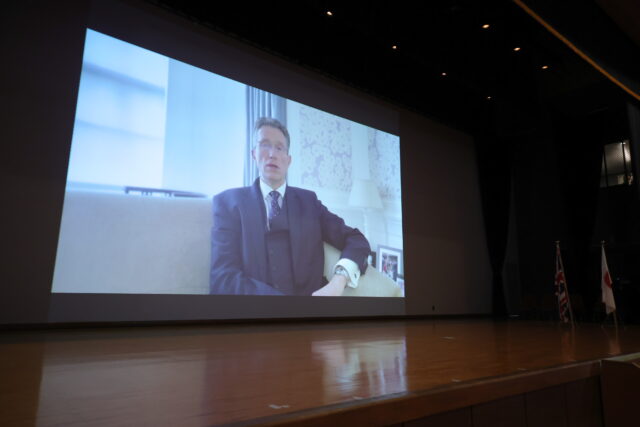 「栄あるシェイクスピア賞授与式にメッセージを賜り、大変有り難く学校を代表し御礼申し上げます。また、この賞を通じて伝統ある御校と教育理念が共有出来ることに喜びと誇りを感じざるにはいられません。今回受賞された後藤結愛さんは、水泳選手として大変素晴らしい成績を収めました。彼女の活躍が本校生徒のみならず、御校の皆さんや多くの方々に希望と勇気を与えてくれることと願っております。カー校長先生よりご提供頂いたシェイクスピア賞が本校生徒の可能性をさらに引出し生徒の持つ多様性に着眼しそれらを尊重する賞であることに深く敬意を払い御礼のご挨拶といたします。」※一部抜粋