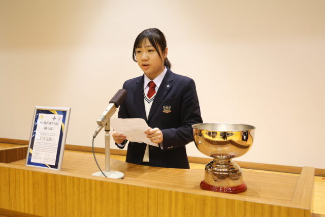 シェイクスピア賞とは、本校の姉妹校であるキング・エドワード6世校から「文武両道」を実践した本校生徒に贈られる賞です。