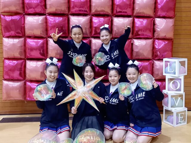 『オープンキャンパス入試説明・相談会』で、チアリーディング部の練習を行います。
