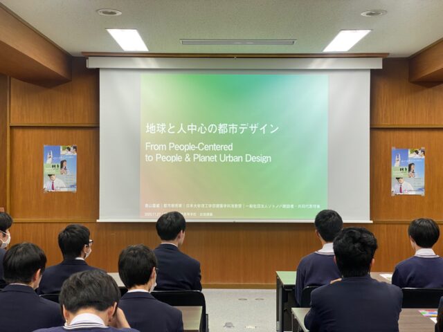 日本大学理工学部建築学科泉山塁威先生による出張講義が、スーパー進学コース・N進学コース2年生の理系選択者対象に実施されました。