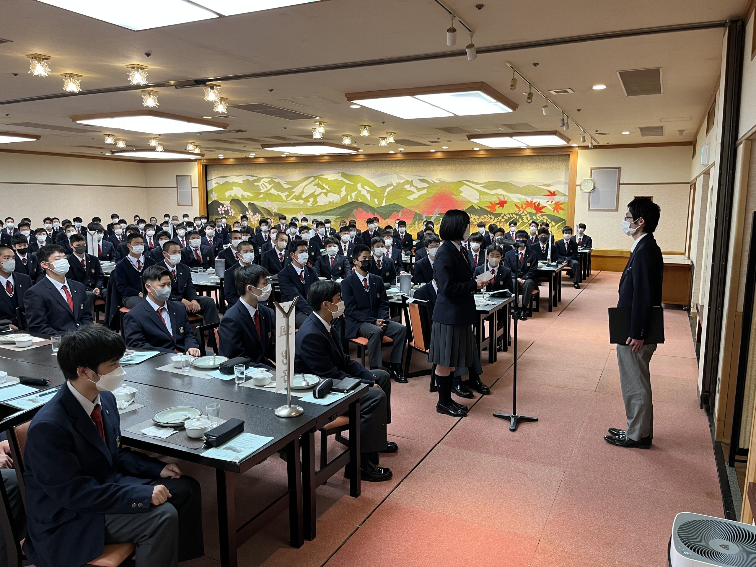 2023年04月10日(月曜日) 【進学コース】宿泊研修1日目 宿泊研修開講式の様子です。これからの高校生活に向けて充実した研修になる様に決意を新たにしました。友人との交流も深めて行きたいと思います。 講義の様子です。学校生活を有意義に過ごすための内容です。 みんな真剣に聴いていました。 夕食の様子です。和やかな雰囲気でした。