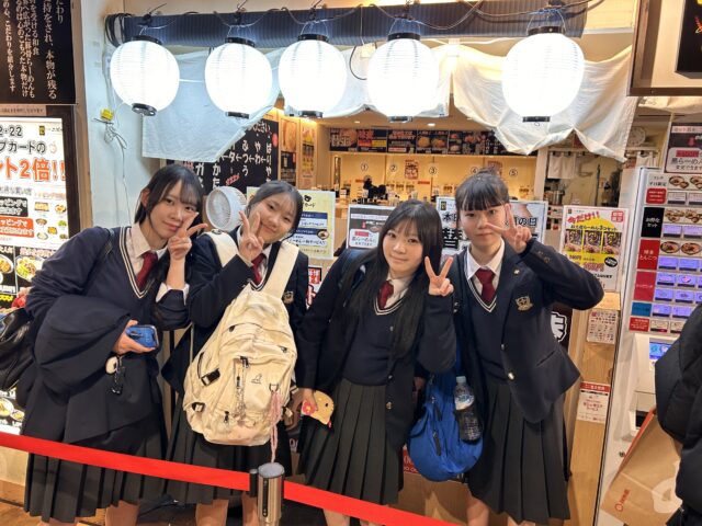 △今日は1日、福岡県を班別行動です。豚骨ラーメンを食べに行く生徒が多そうです‥!