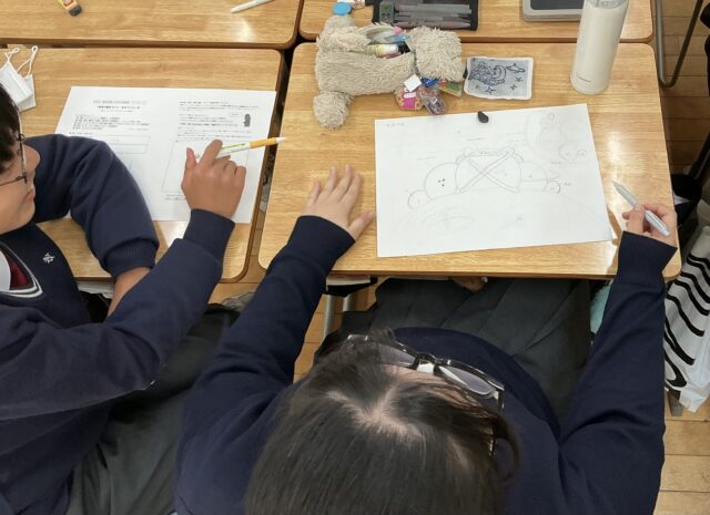 「これまでにない新しい特徴」を大切にするために、頭を柔軟にしながらアイデアを出し合い、活発に議論を重ねていました。徐々に、これまで言葉で表していたイメージが絵として形になり始め、色や細部について話し合う班も増えてきました。