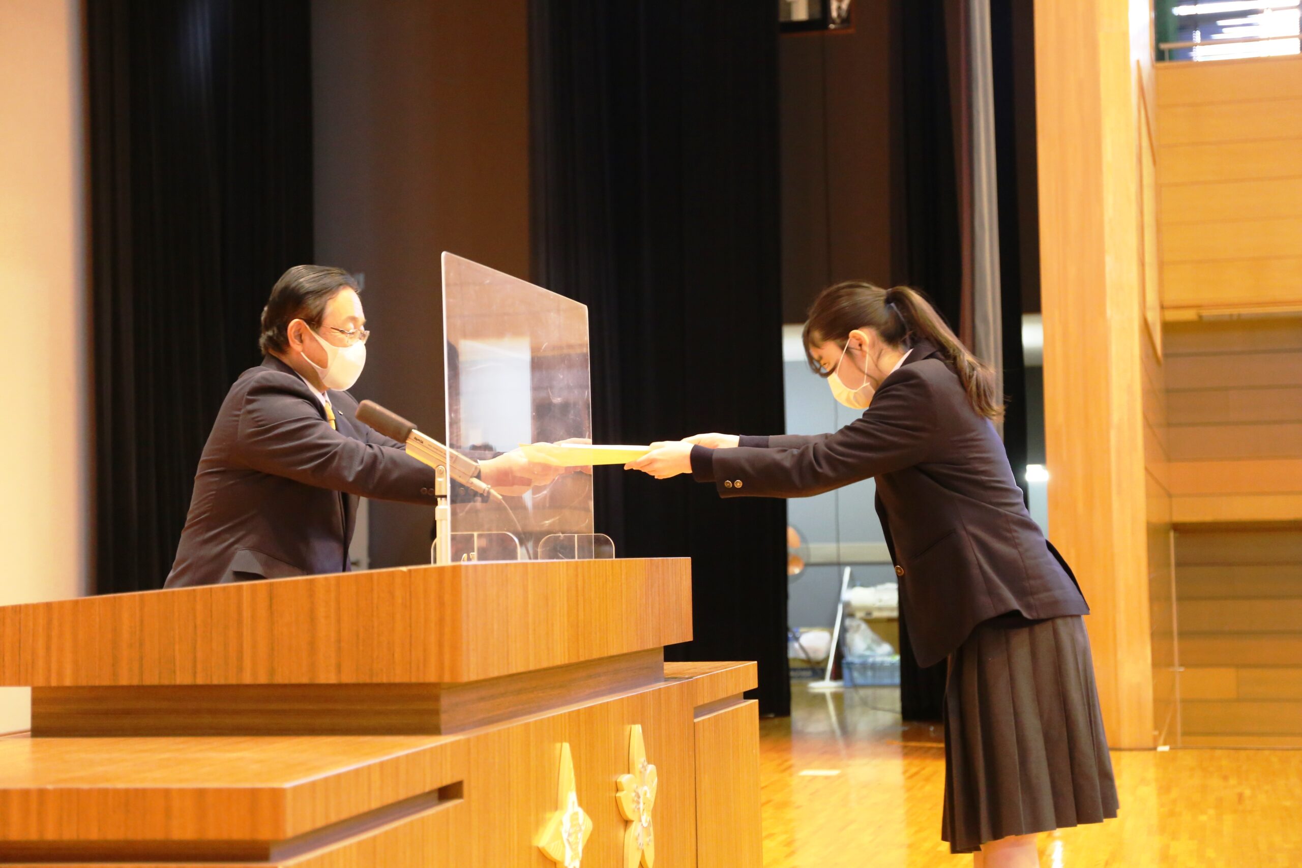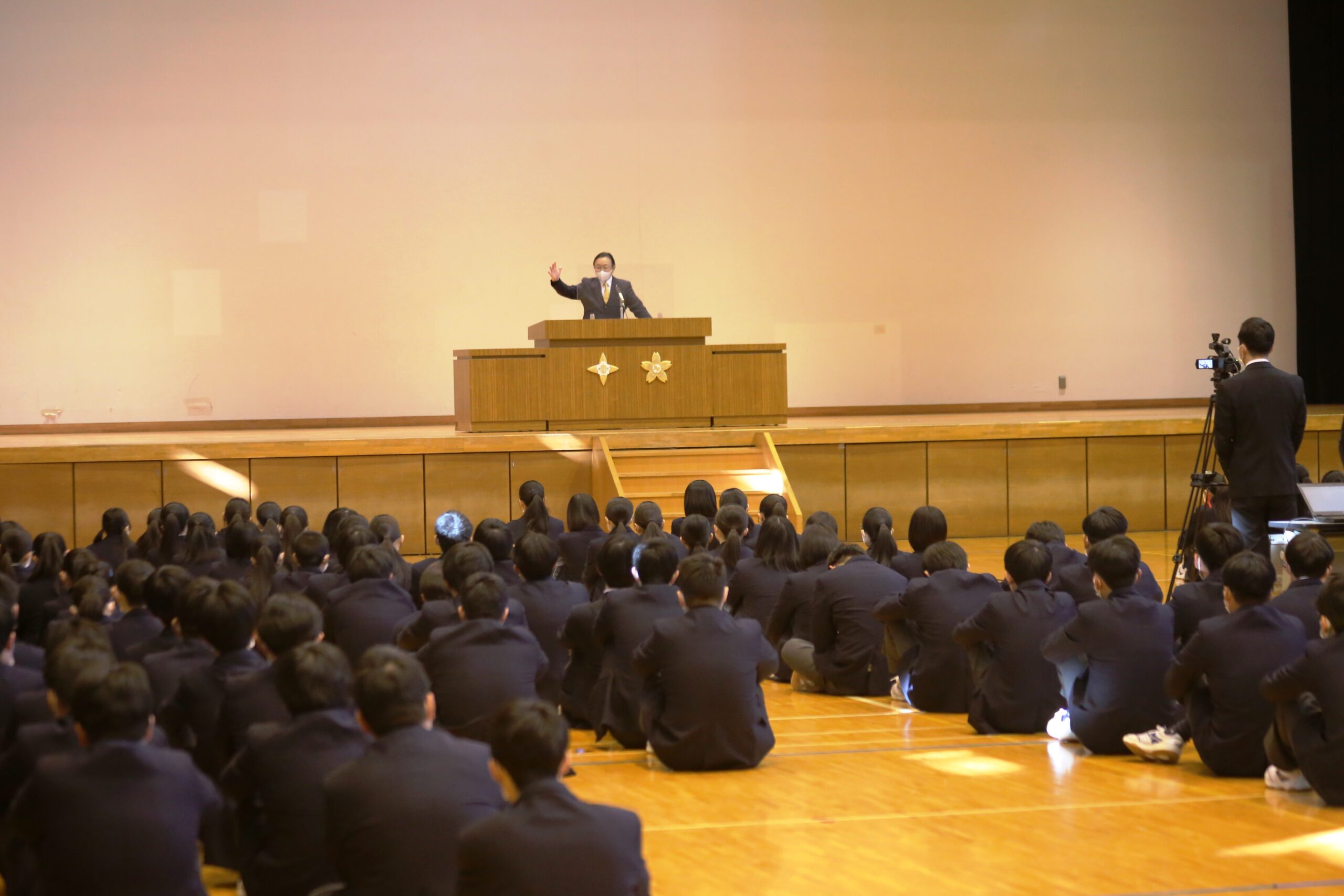 プラザ40には3年生が集まりました(1・2年生はライブ配信視聴)。