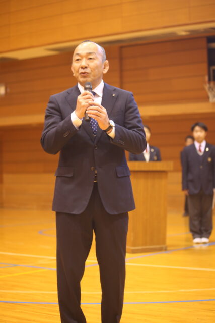 初めに髙原校長先生から、「定期テストも終了し、普段の学校生活の中ではなかなか触れられない管弦楽を通して生徒の皆さんの感性を育んでほしい」とお話しをいただきました。