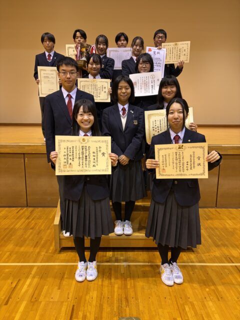 まず校歌斉唱があり、その後、後期に活躍した部/部門の賞状伝達(下記詳細)が行われました。