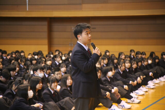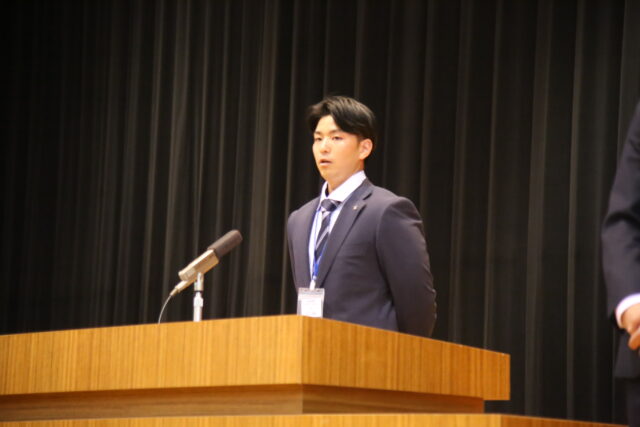 続いて、新任教職員挨拶が行われたあと、生徒代表歓迎の言葉を3年9組の大和礼人さんが述べました。