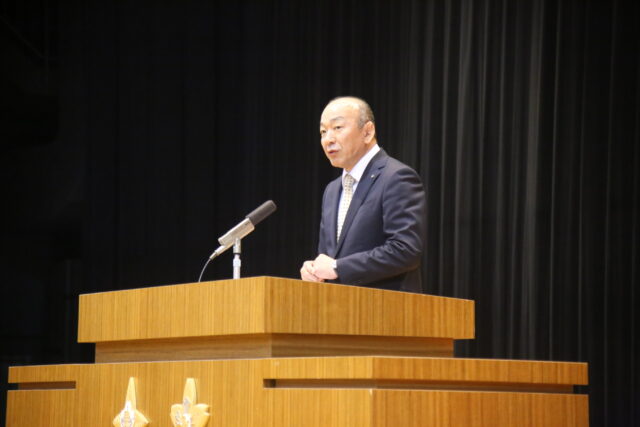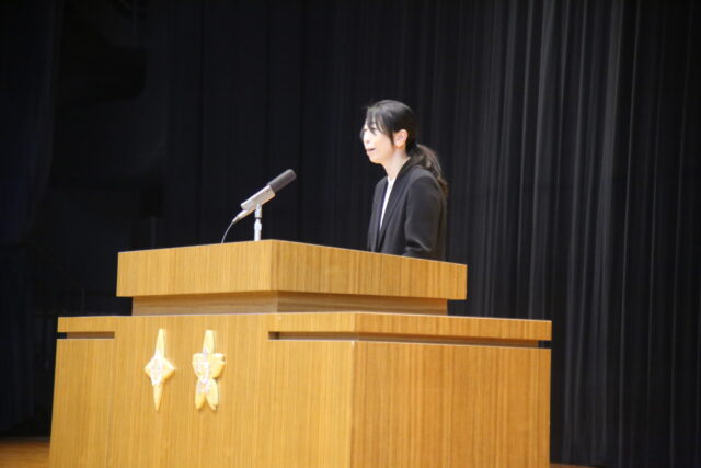 生徒会副議長の三日市桜楽さんが歓迎の言葉を述べ、新入生代表挨拶を石川比呂さんが行いました。