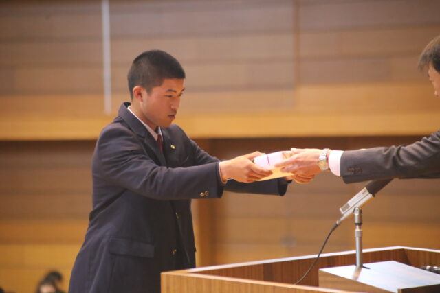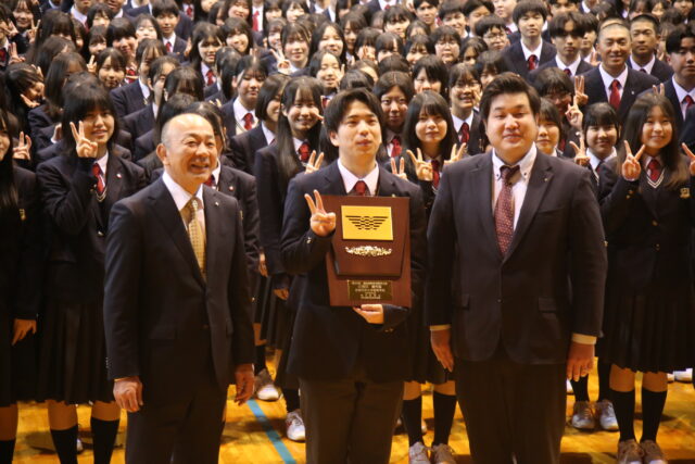 その後、髙原校長より、「USA Japan Nationals 2026 高校編成、Show Cheerleading部門 Novice」第3位を収めたチアリーディング部に賞状が授与されました。